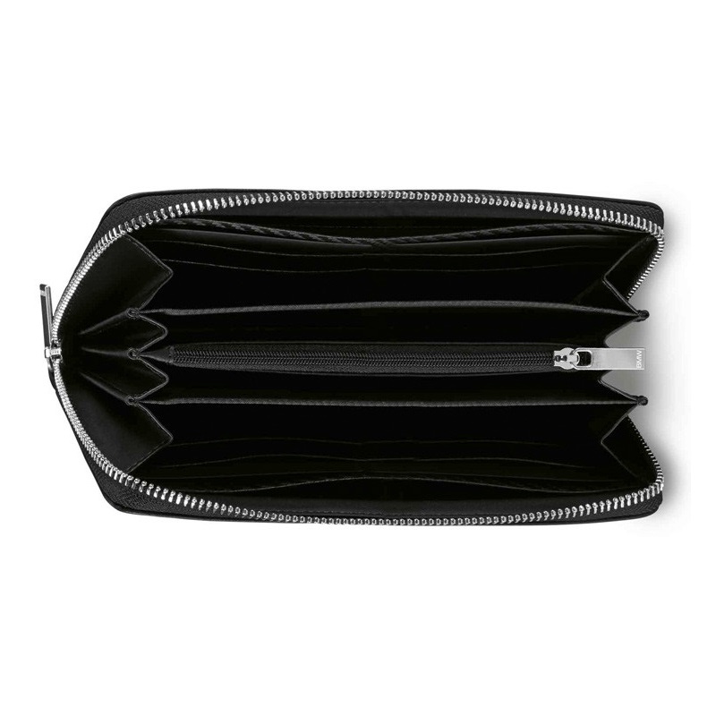 Cēls BMW M maks ar karbona detaļām. Aprīkots ar 6 nodalījumiem: 4 karšu sloti, 1 kabata ar rāvējslēdzēju. Materiāls: 100% āda. Odere: 100% poliesters, oglekļa šķiedras detaļas. Melna krāsa. Izmēri: aptuveni 19,5 × 11 cm BMW M logotips metālā priekšpusē. Žakarda odere ar BMW M logo un silikona svītrām BMW M krāsās.Ražots Itālijā.