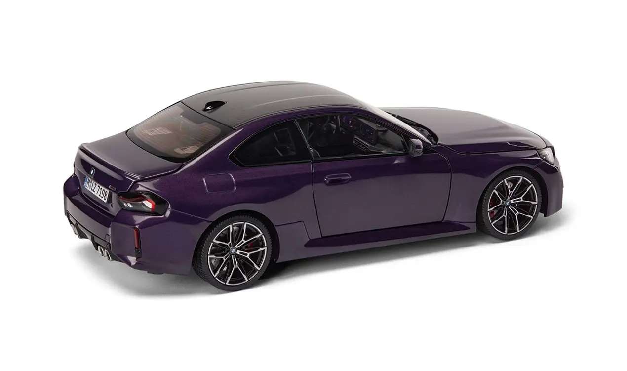 Oriģinālais BMW M2 Coupe G87 kolekcionāra modelis mērogā 1:18 Materiāls: liešanas metāls ar plastmasas detaļām. Motora pārsegs, durvis un bagāžnieka vāks ir atverami. Krāsa: Krēslas violeta pērļu metālika. Šis miniatūrs ir augstas kvalitātes kolekcionāra modelis, kas paredzēts izvietošanai vitrīnā vai kā uzmanības piesaistīšanas elements uz galda. Prece nav piemērota kā rotaļlieta.