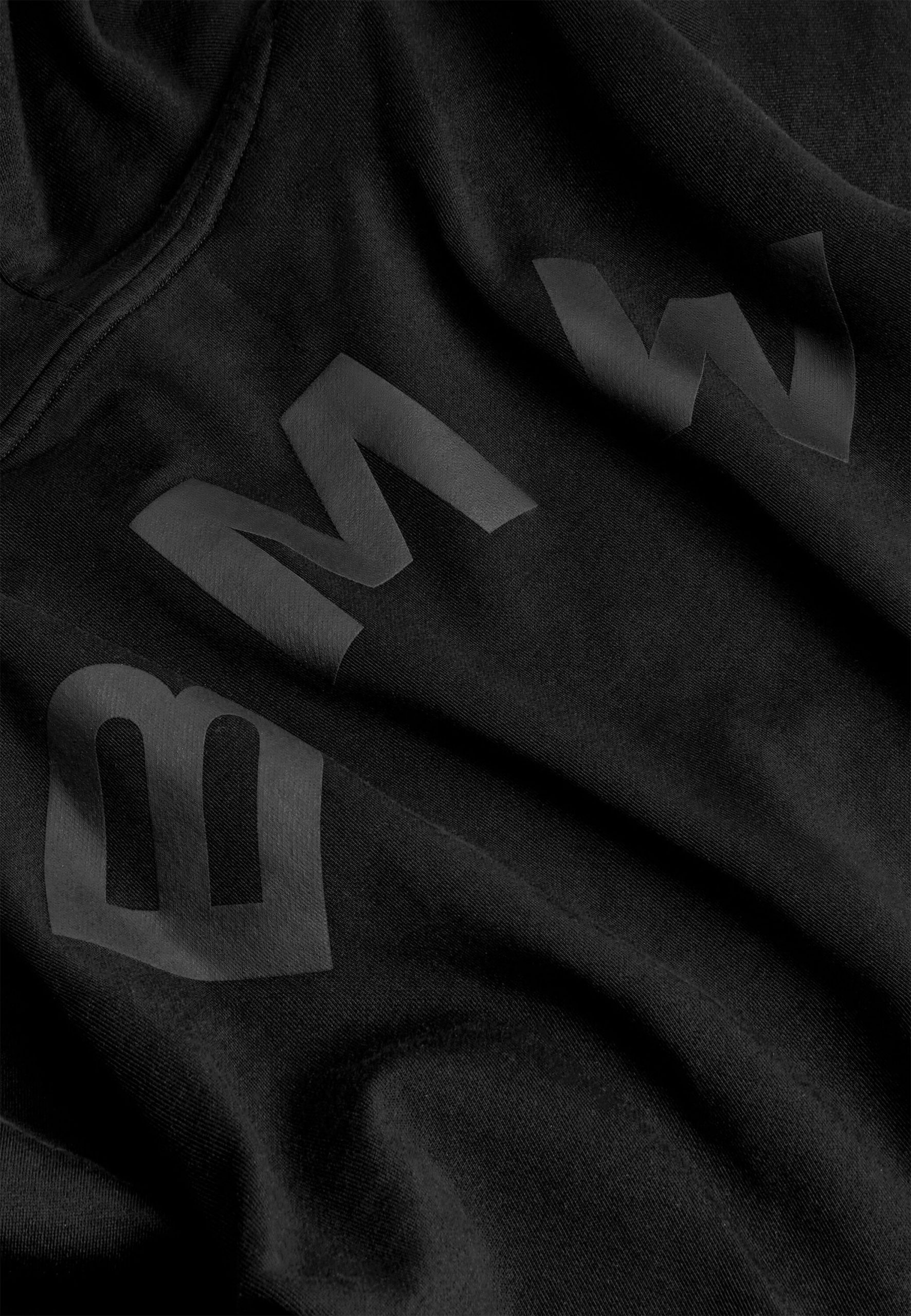 Melnā krāsa, S izmērs. 100% organiskā kokvilna. "Baby puff" apdrukas BMW logotips. Oversize piegriezuma. Atvērta apakšmala, kas nolaista/nedaudz izliekta aizmugurē. Kapuces auklas galam ir neapstrādāts gals, cilpa un stienis. Uz aizmuguri vērsts logotipa izvietojums.