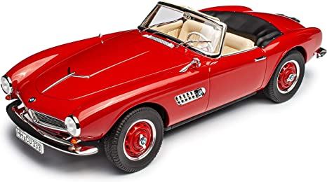 Миниатюрный экземпляр уникального красного кабриолета BMW 507 Rodster — идеально воспроизведенная серийная модель, которая была доступна на рынке в 1958 году.