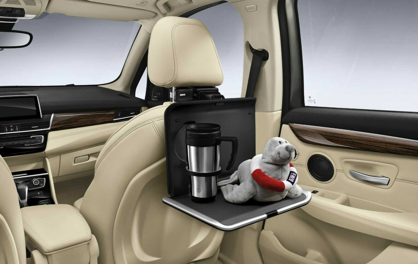 Складной столик является одним из аксессуаров системы Travel & Comfort и легко устанавливаются в базовый модуль системы, приобретаемый отдельно. Он очень удобен для пассажиров на заднем сидении и может регулироваться как по высоте, так и по углу наклона. Столик имеет выдвижной подстаканник со складным удерживающим кольцом. Столик прошел испытания на столкновение в автомобилях BMW и отвечает особенно строгим требованиям безопасности BMW.